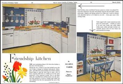There are two additional columns which Gladys wrote although not every reader of her books today may be aware of them. In the Ladies’ Home Journal, she wrote a long-running column of Kitchen Remodels which our members still enjoy today. Kitchens that were featured included Stillmeadow’s, Still Cove’s, Alfred Lunt and Lynn Fontanne’s, Edna St. Vincent Millay’s, rural farm kitchens, those in student housing, etc.